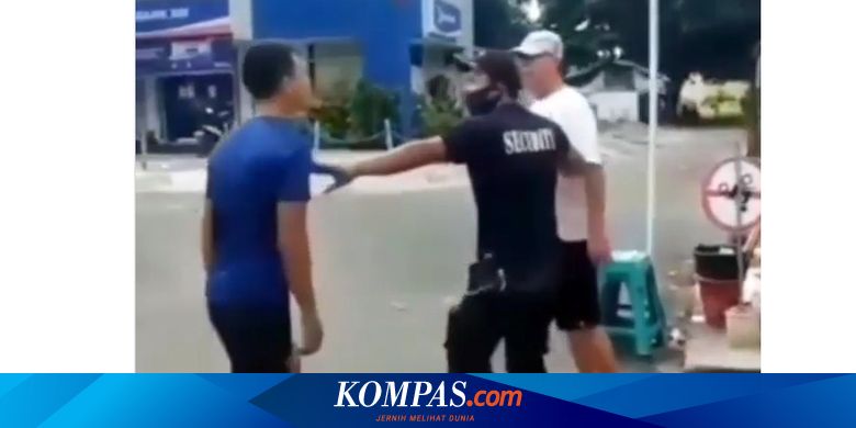 Melihat kejadian itu, seorang pria paruh baya yang sebagai koordinator security pun ikut menegur lantaran pemuda itu tidak mematuhi aturan menggunakan masker yang terpampang jelas di spanduk portal.
